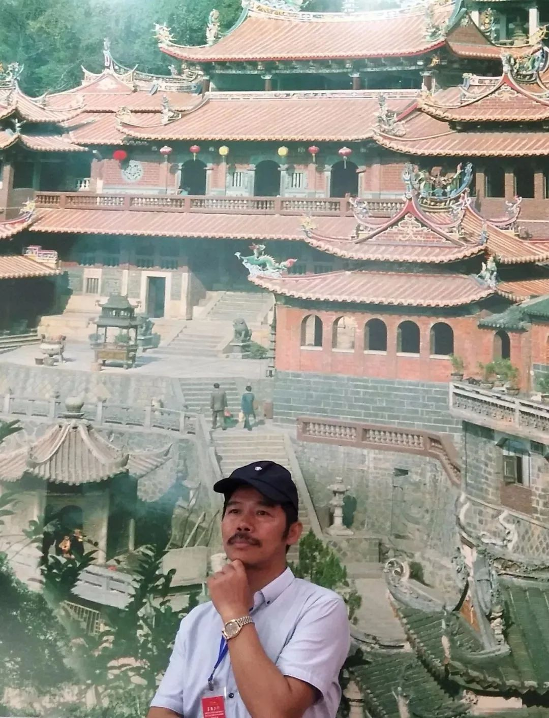 《印度高僧真谛泉州译经》这幅画由泉州本地画家黄瑾毅、戴毅强两位老师共同创作完成。两位画家亲自去到九日山采风。九日山上的“翻经石”就是因拘那罗陀而得名。拘那罗陀自印度泛舟来华挂锡九日山延福寺时,最喜欢在一块石头上潜心译经,这石平坦如砥,可容十数人同坐。后人为了纪念他,将这块石头命名为“翻经石”。“翻经石”是九日山现存年代最早、意义深远的古迹。远眺翻经石,虽然眼前风光已千差万别,但是睹景思人,对于拘那罗陀高僧的艺术呈现,画家有了更加形象的构思。