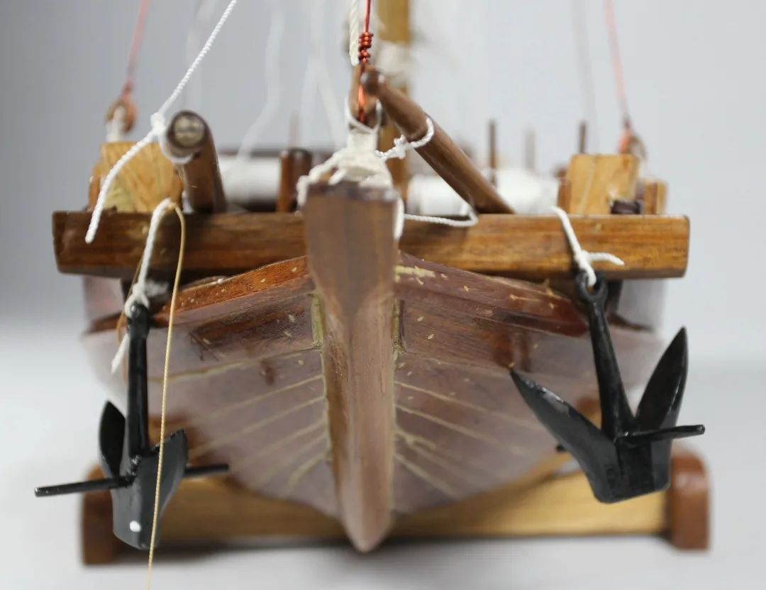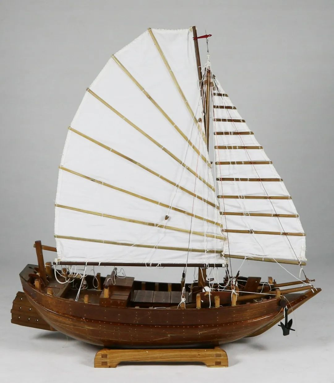 船模是按传统木帆船百代仔和三角艇的数字比例制作,也按传统称呼定名。选用优质格木,精心制作,船模作品和原船一样格局,月台、厨房、望风、七星眼等一应俱全。帆架制作也严格按照传统民俗规定,根据传统法则排列压骨,起前帆自然顺畅,展风有力、平稳,船体外形华丽美观,手工精湛,桅帆、龙骨、星眼等力学平衡合理。现今这种木帆船几乎已消失,设计制作木帆船模型也是为了让年青一代了解我国的帆船历史。