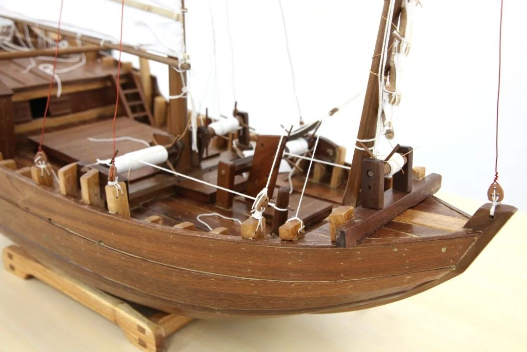 介绍:该船为北部湾海区著名的拖网渔船,主要作业于南海海域。水线面呈炮弹头,吃水浅。船的中前方设插板,舵面积大,入水深。单桅,悬三角形硬帆,帆面积大,航速快。货舱大,既能装运鱼产品,也能提供渔船在海上的补给。