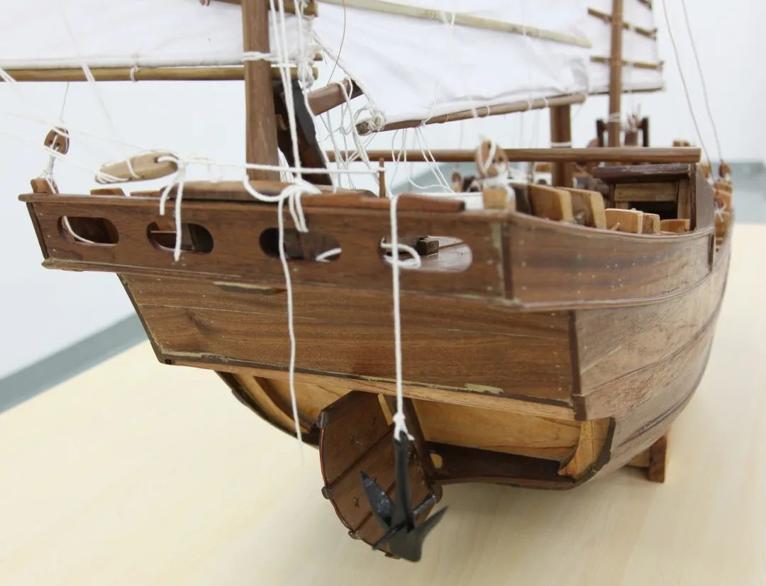 谈及创作,蔡老师表示,《百代仔》是以明清时期九洲江下游及北部湾远海一代的传统捕鱼木帆船为原型而设计的,《三角艇》则以我国传统渔货两用木帆船为原型设计。这两种传统木帆船,体型小巧玲珑,体外流线自然顺畅,吃水适中,起帆、下帆、转帆容易,摆舵简单科学,航行平稳。船内各应用单位布局合理实用,故一直沿用到上世纪八九十年代。
