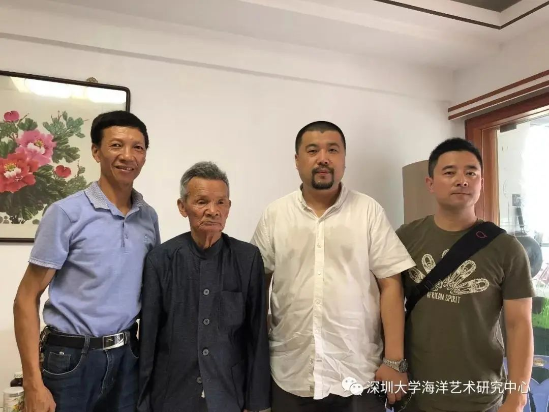 深圳大学海洋艺术研究中心调研团队与吴九秋(左2)及吴添才老师(左1)父子合影