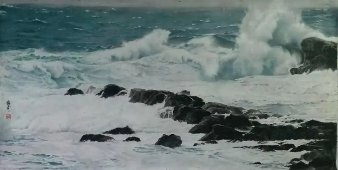 《惊涛骇浪》 香港·许昭奇  68*136cm 国画