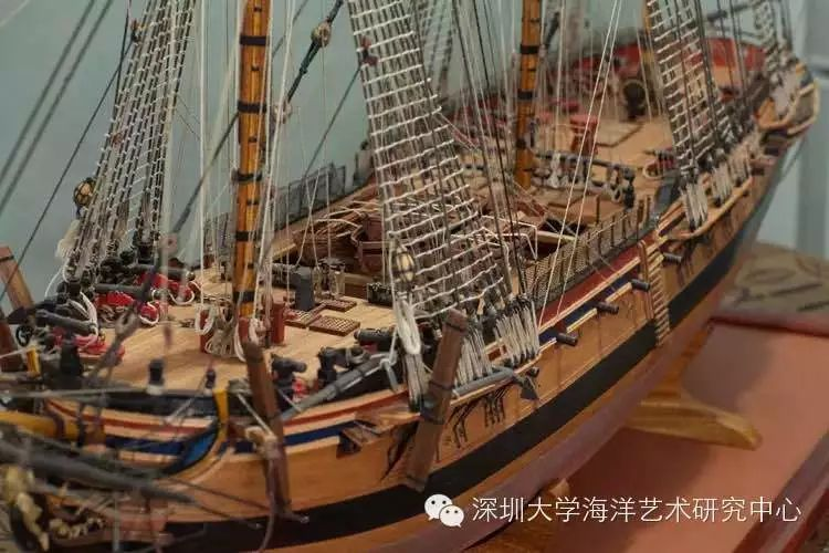 “哈维(HARVEY)号”是1847年在美国建造的一艘专门用于茶叶和丝绸贸易的快速帆船,排水量225吨,长97英尺,宽25英尺,深约11英尺。配备8门火炮用于防御。(2015深圳大学海战模型研究基地造)