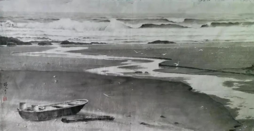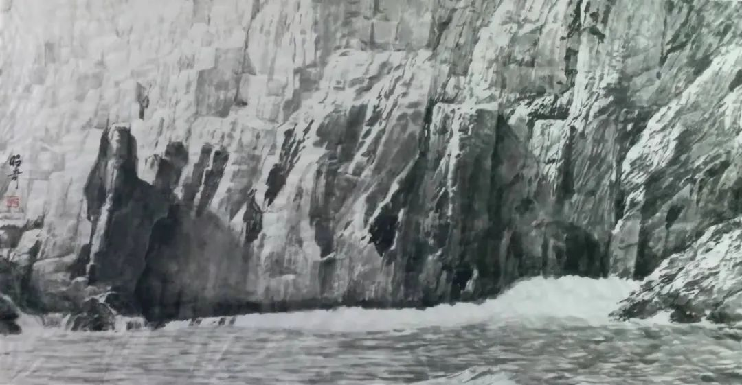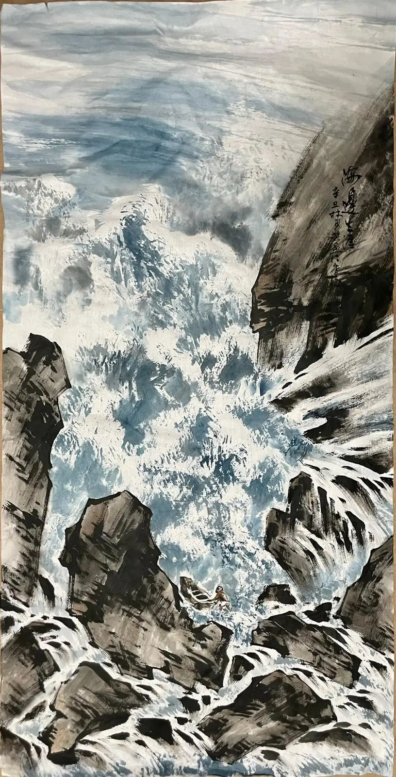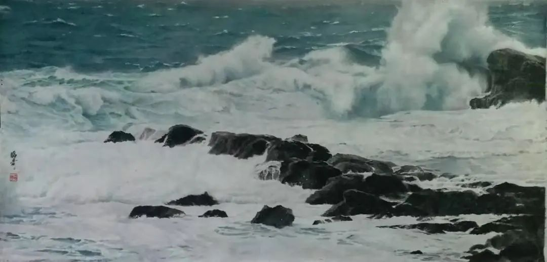 《惊涛骇浪》许昭奇(香港) 国画 68*136cm