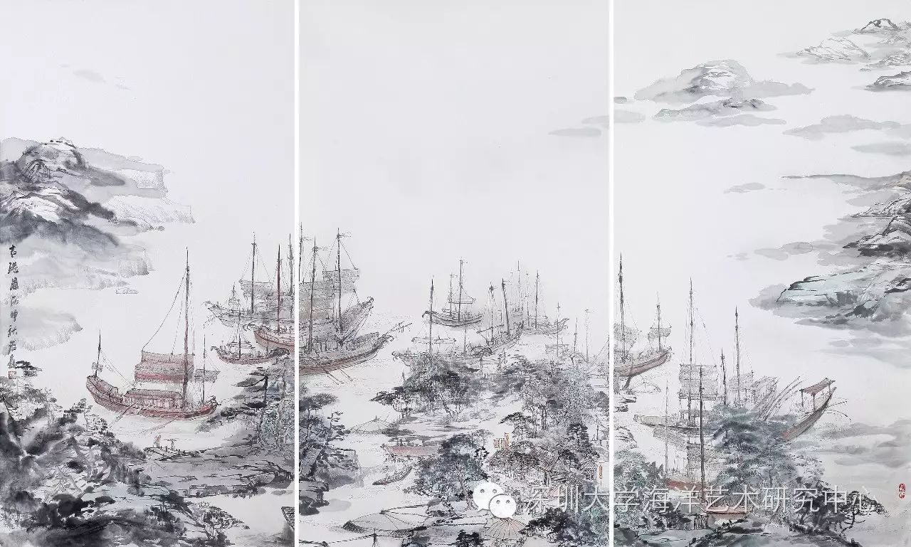 《出海图》作者:张岩鑫,尺寸:290×180cm三联画,中国画