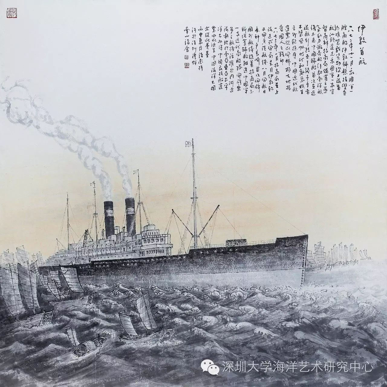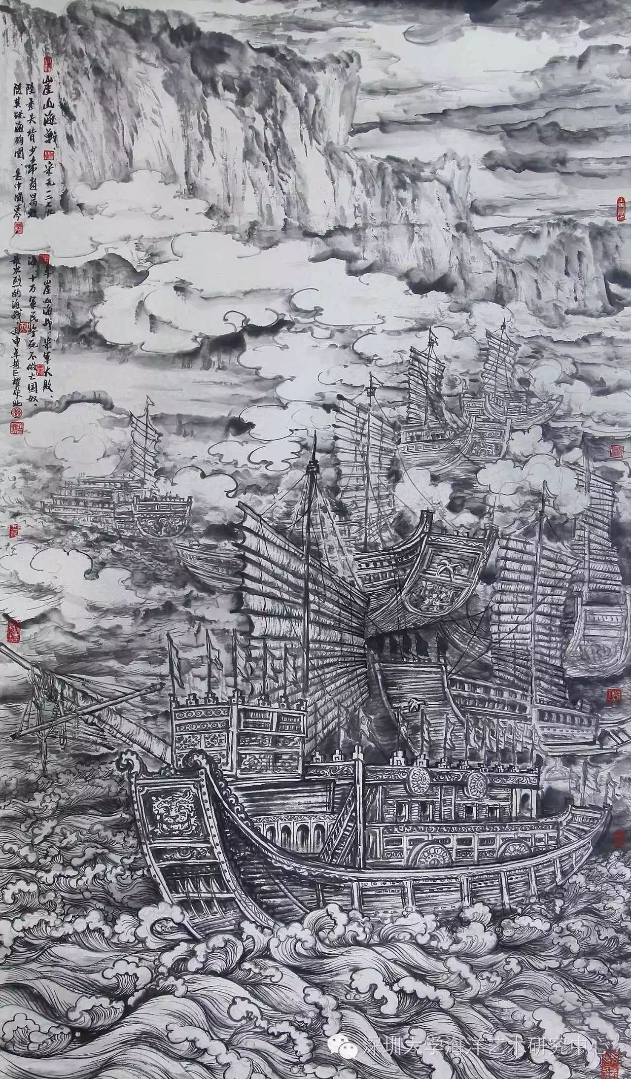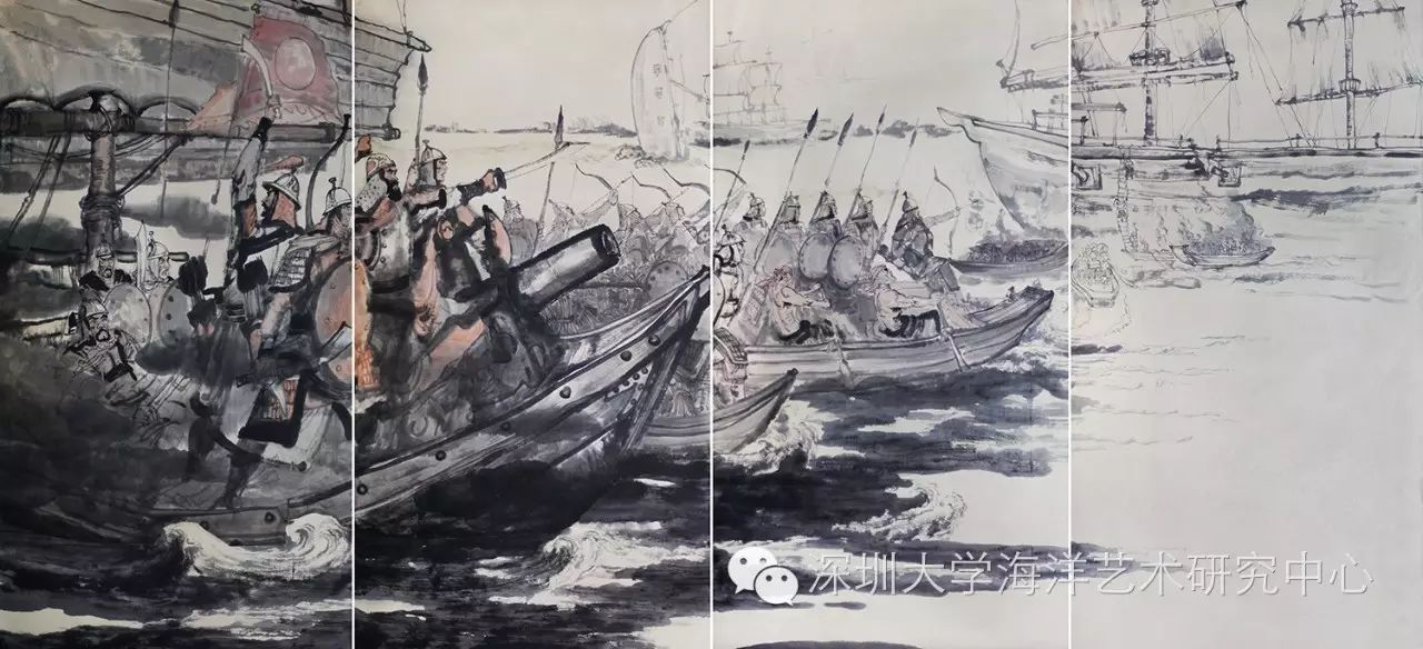 10月22日,《风帆时代》海战绘画作品展——海上丝绸之路两千年展览在深圳大学美术馆开幕,一直鲜为人知的中国海洋历史通过一幅幅生动的画作呈现在观众面前。了解中国海洋故事,铭记历史、勿忘国耻、振兴中华,增强历史责任感。