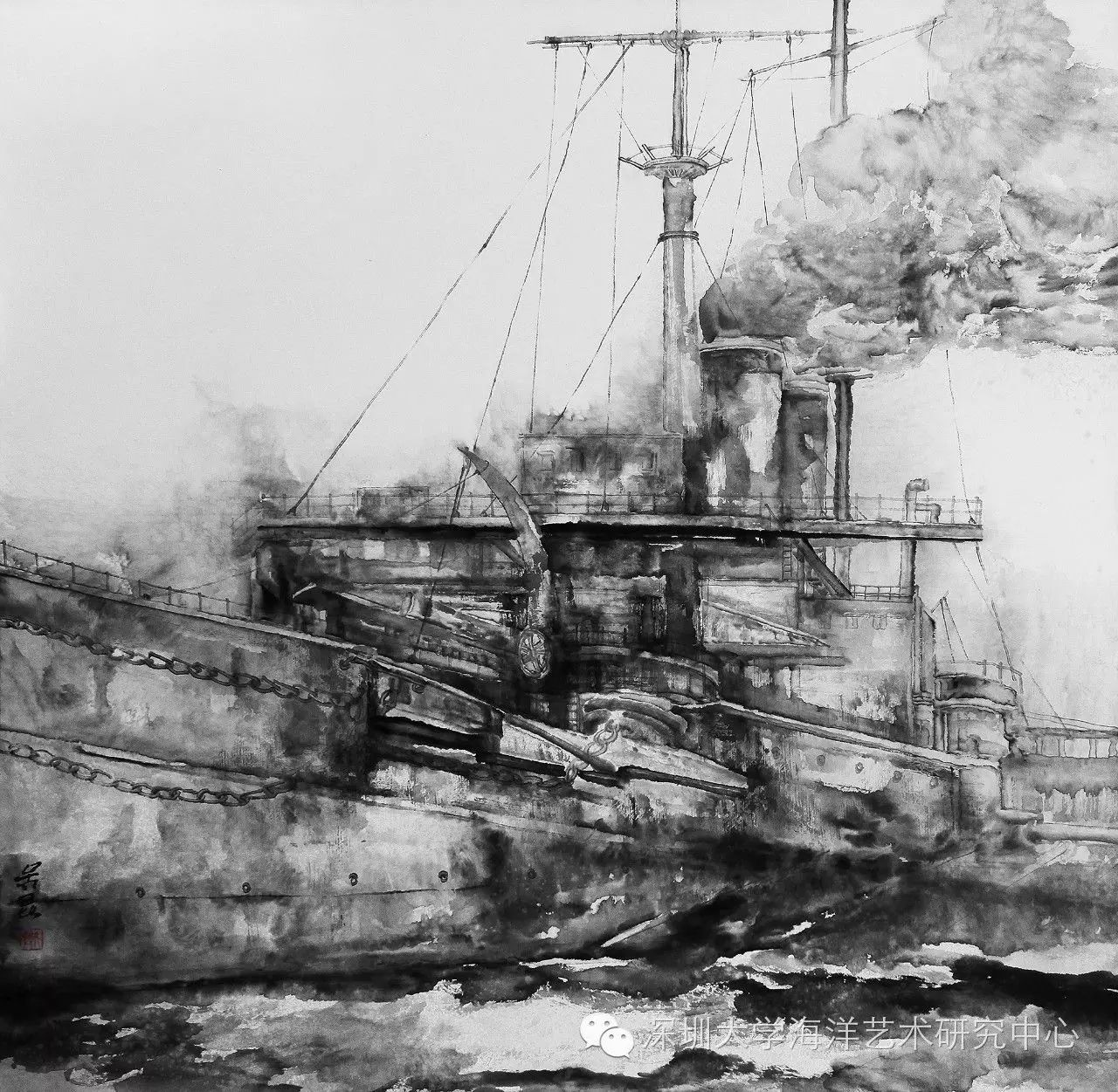 《海魂No.3---铁甲战舰》作者:吴昆,尺寸:123×123cm,中国画