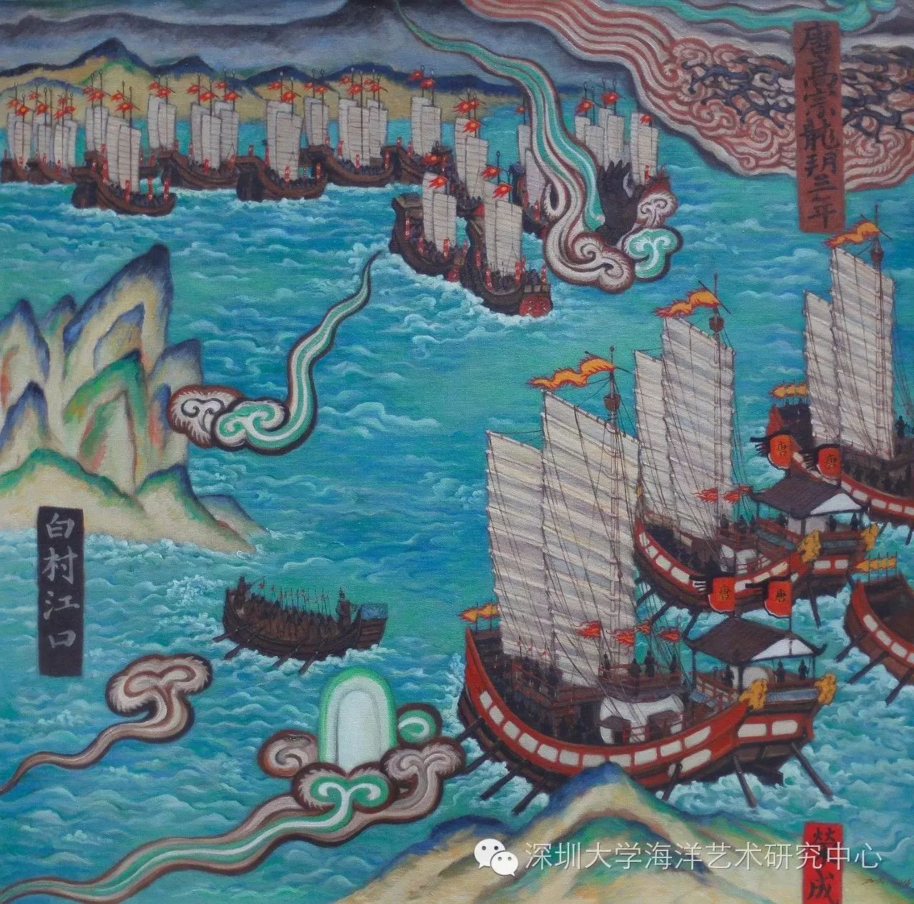 《白江口大战前夕》作者:沈红泉,尺寸:150×150cm,油画