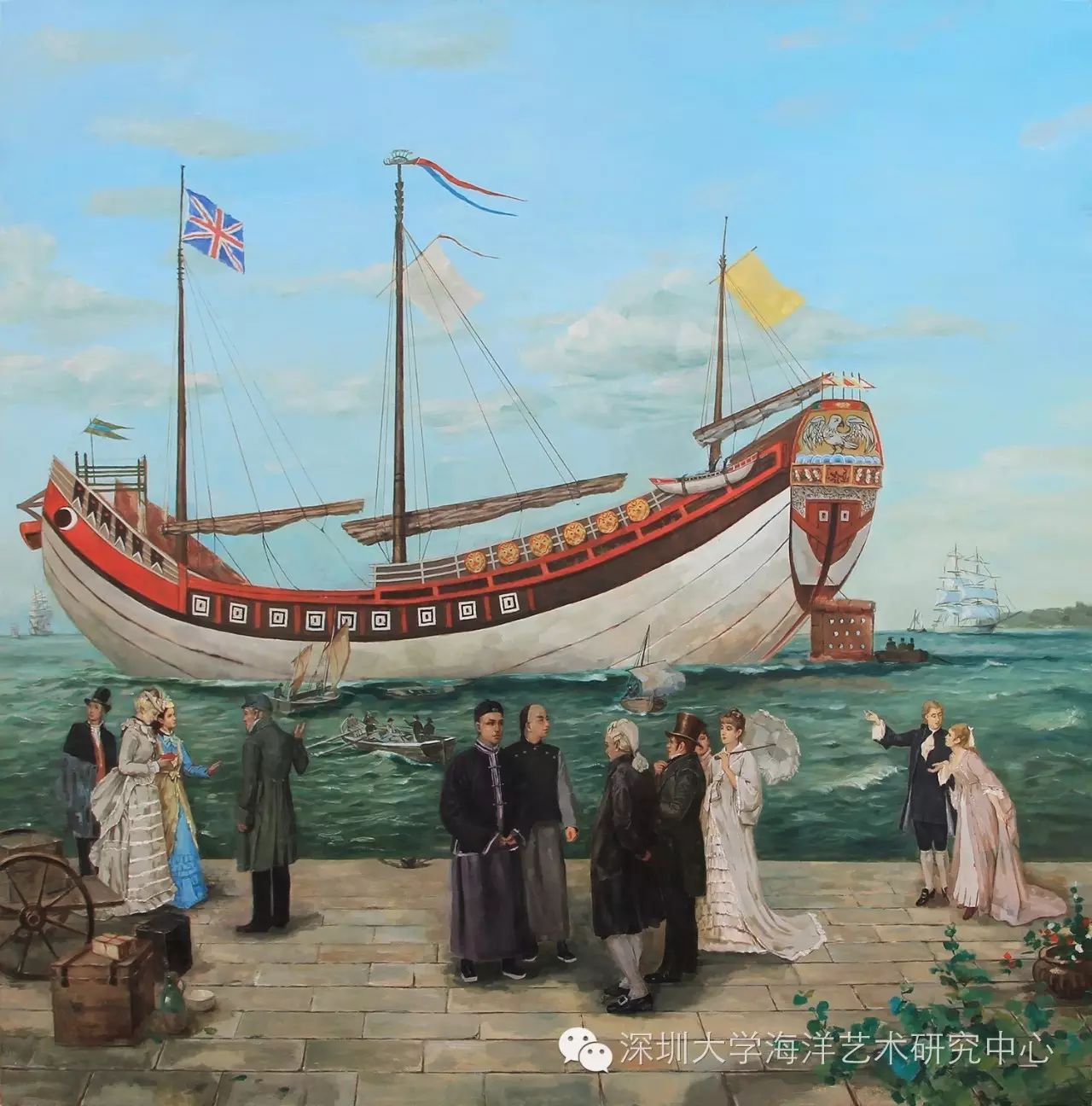 《希生乘中国木帆船耆英号远航欧美》作者:王文华,尺寸:150×150cm,油画