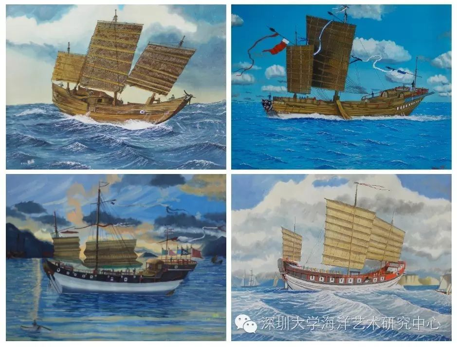 《中国四大木质古帆船》作者:陈瑞, 尺寸:39x55cm(四联画),水粉画