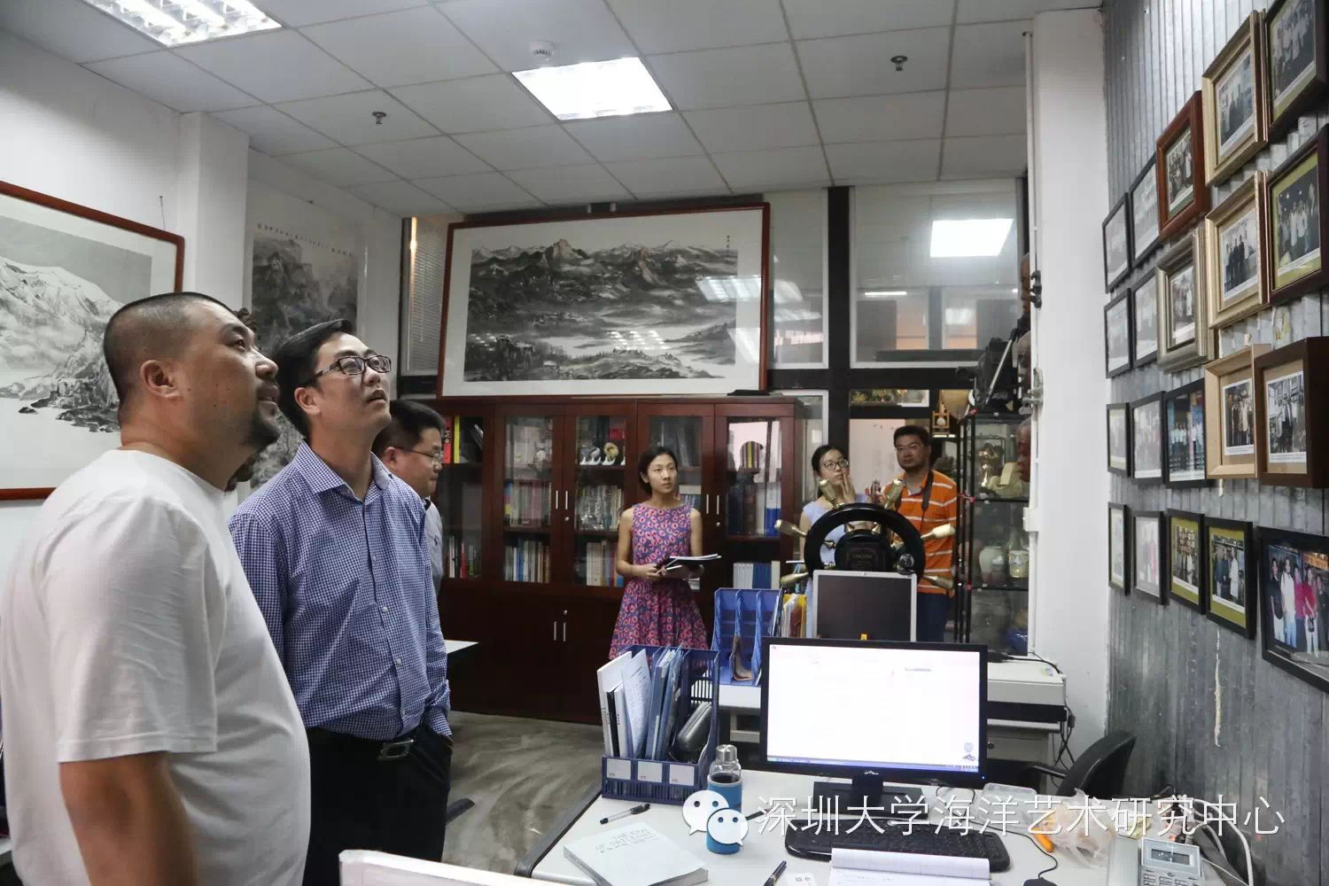 2015年5月14日,深圳市海雅(集团)商业有限公司副总裁王剑强、企划中心总经理于洪水参观海洋艺术研究中心与深圳大学国家大学生素质教育基地3号艺栈美术馆与海洋艺术研究中心,张岩鑫主任陪同参观了李瑞生、李晴、陈琼贵等教授的工作室。