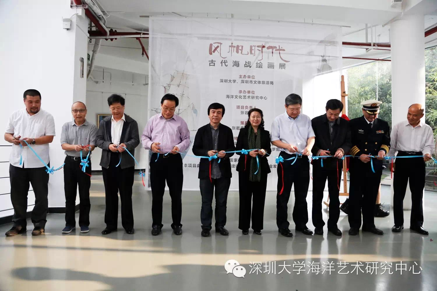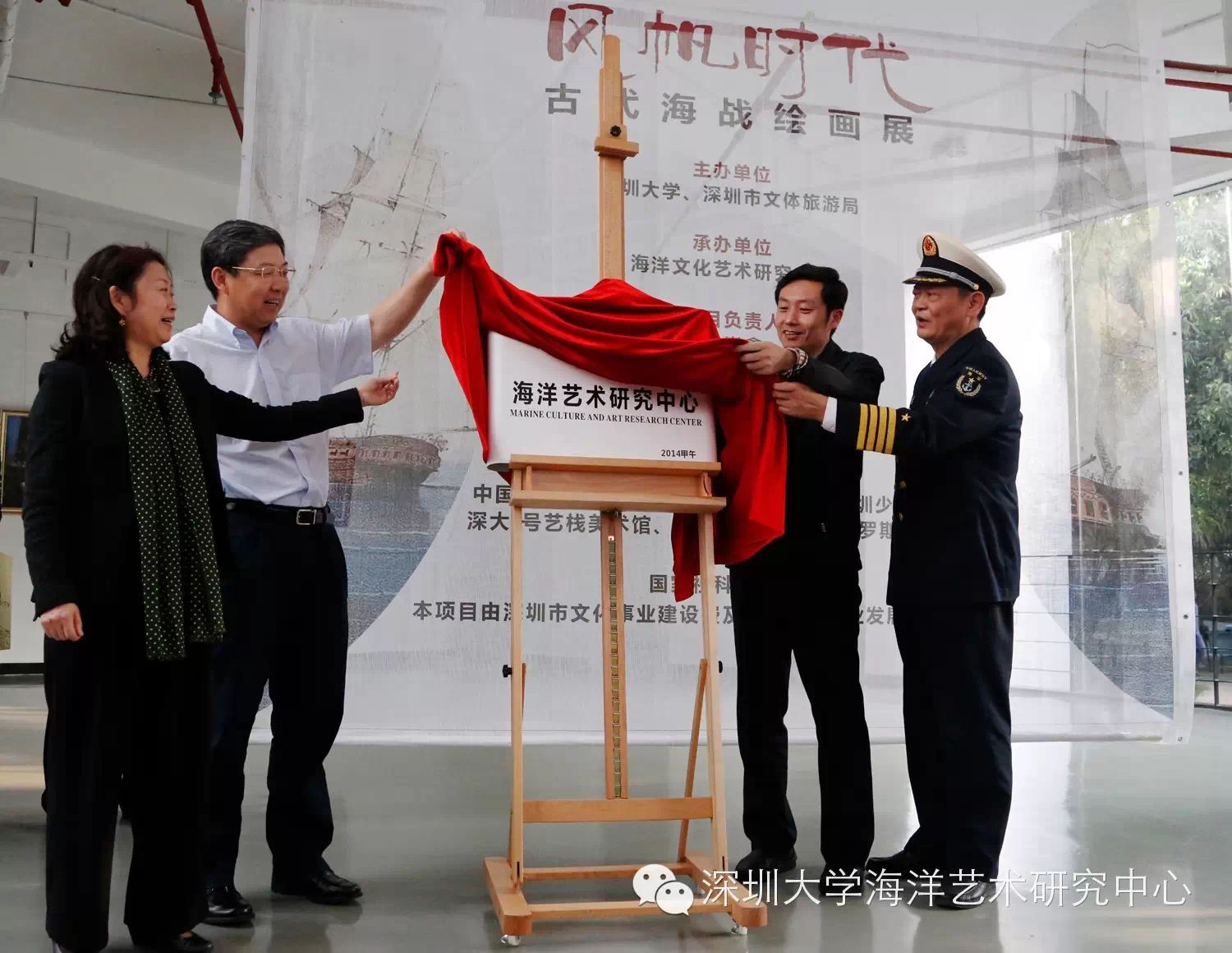2014年11月26日,《风帆时代》——古代海战绘画展盛大开幕,国家文化部艺术司诸迪司长、海军南海舰队领导许尊长大校、我校李清泉校长、深圳市文体旅游局柴凤春副巡视员等领导参加了开幕仪式并为“海洋艺术研究中心”成立揭牌。研究中心主任张岩鑫、梁二平主持展览并讲解。