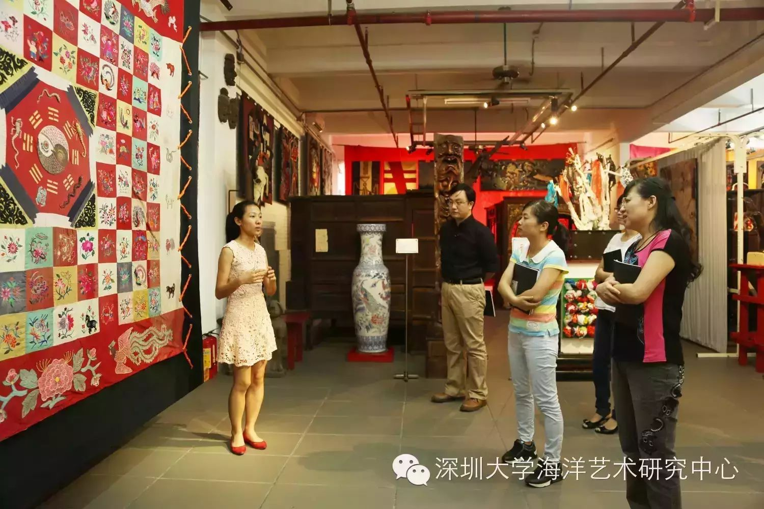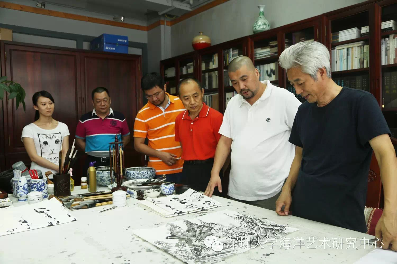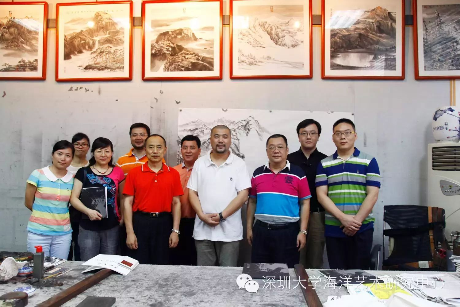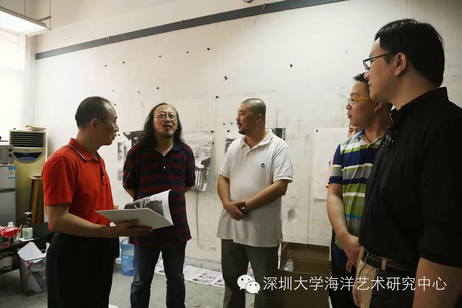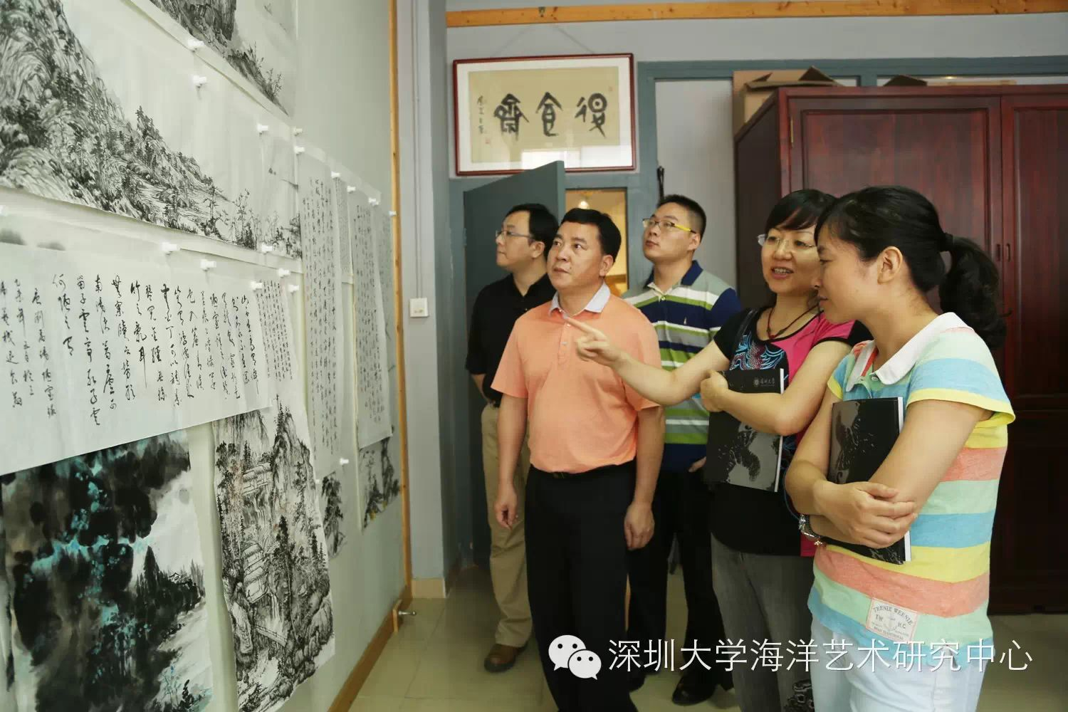 2015年5月26日,深圳湾出入境检验检疫局王光局长等领导一行参观深圳大学海洋艺术研究中心与国家大学生素质教育基地3号艺栈美术馆,中心主任张岩鑫陪同参观了李瑞生、齐凤阁、邹明等教授的工作室。