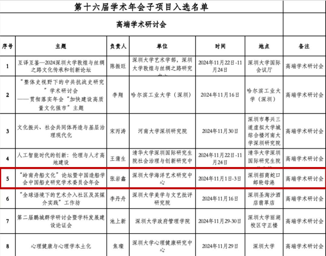 2024年11月5日,深圳市社会科学联合会发布了《关于公布2024年第十六届深圳学术年会子项目入选名单的通知》,深圳大学海洋艺术研究中心成功入选。
