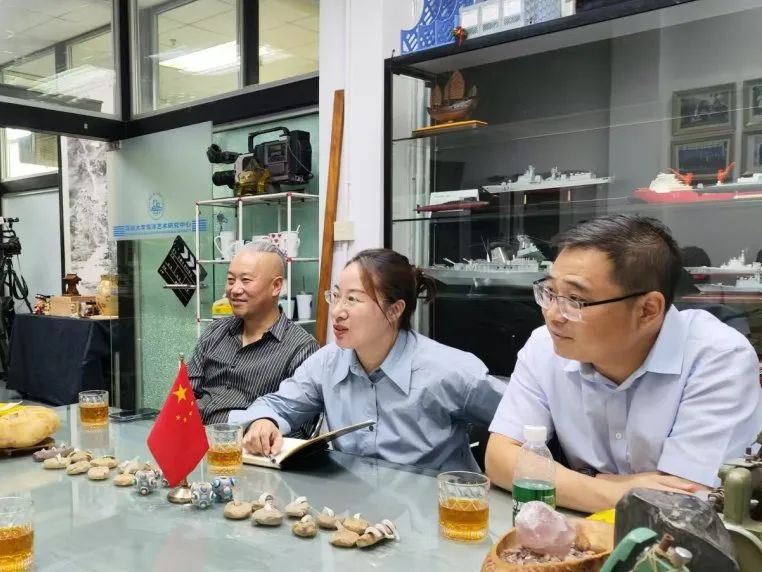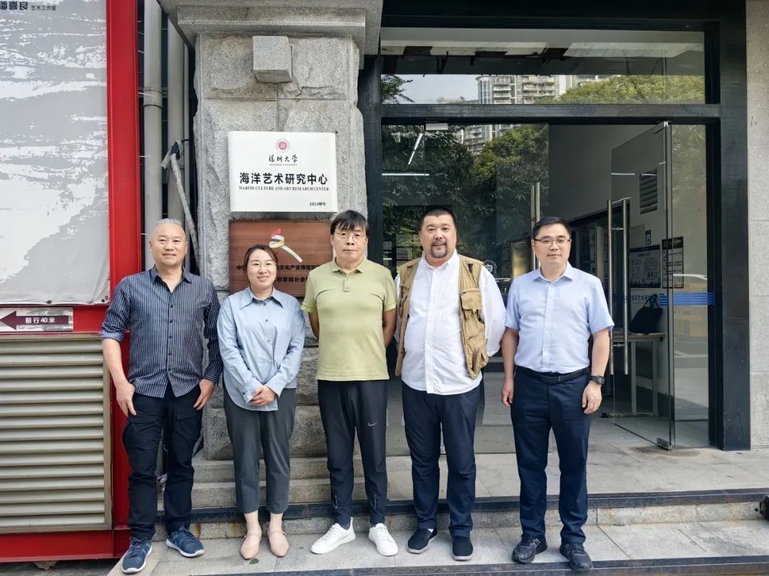 深圳大学海洋艺术研究中心主任、深圳市海洋文化艺术研究会会长张岩鑫教授、深圳大学海洋艺术研究中心学术总监梁二平教授与江苏海洋大学艺术设计学院一行进行交流会谈