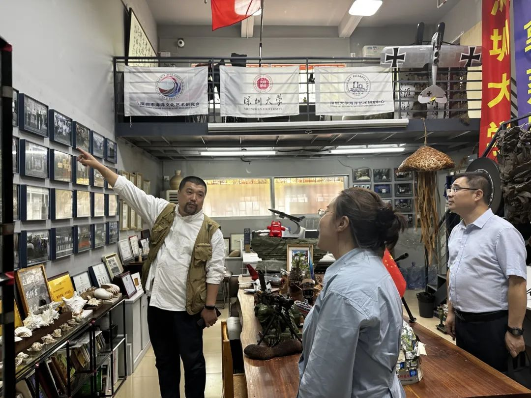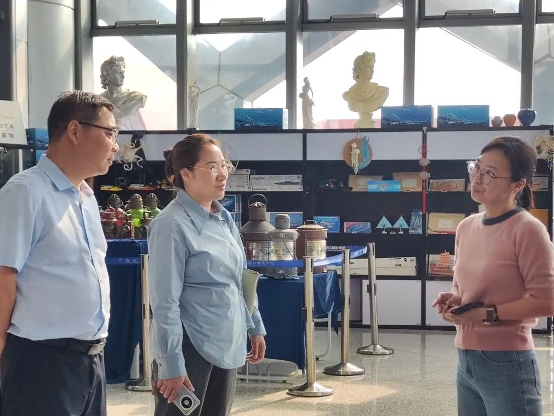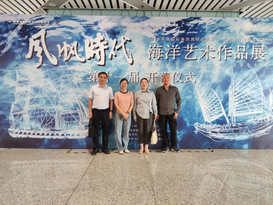 江苏海洋大学艺术设计学院副院长曾英一行首先来到深圳大学海洋文化科普教育蛇口邮轮母港基地,深入了解基地在海洋文化教育和科研方面的最新进展,并参观了第十一届《风帆时代》海洋艺术作品展。