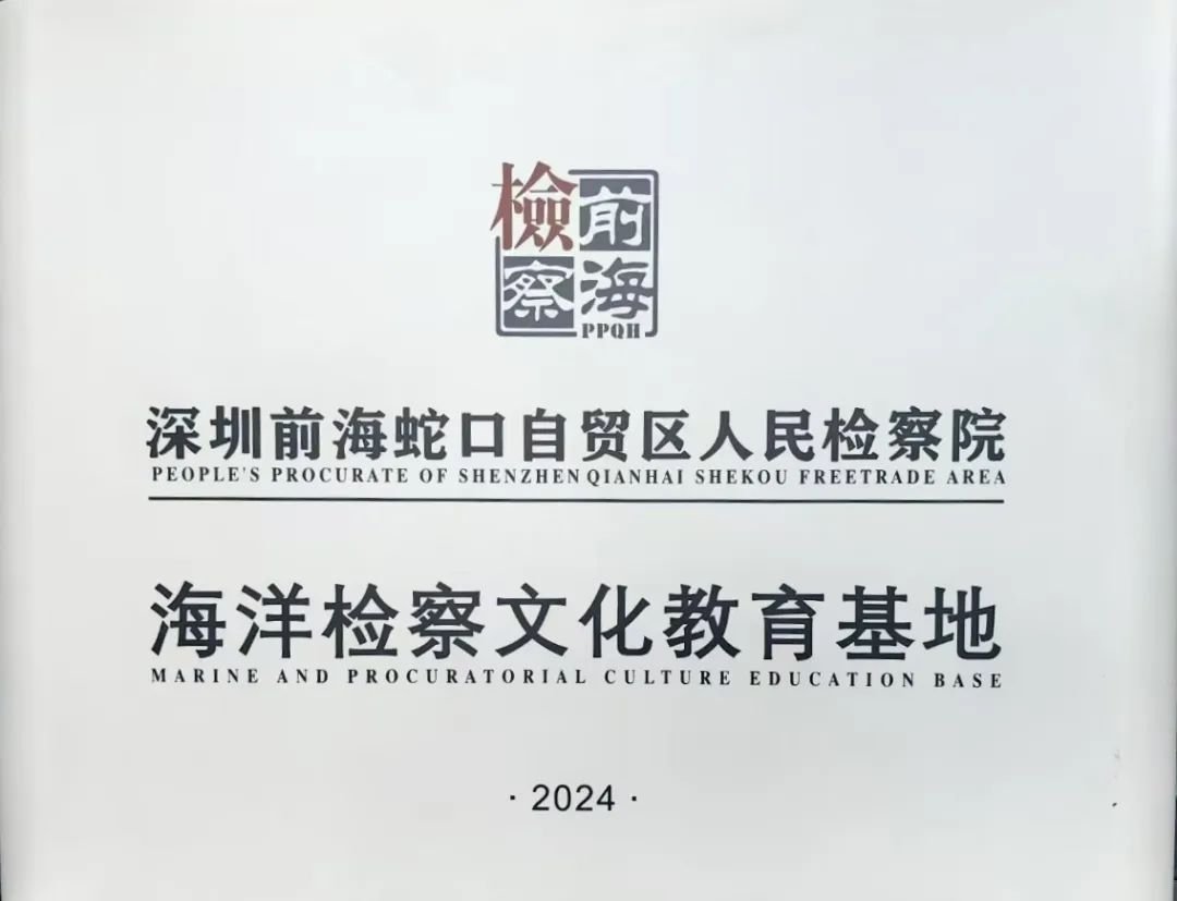 “深圳前海蛇口自贸区人民检察院海洋检察文化教育基地”牌匾