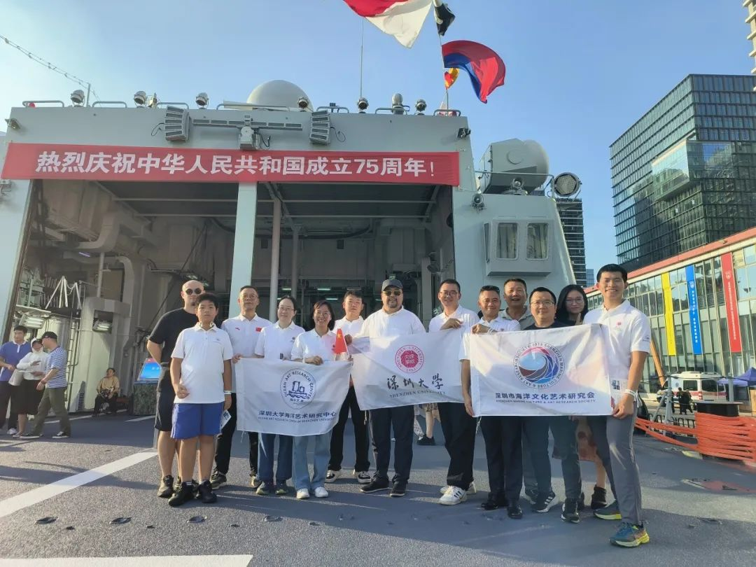 深圳大学海洋艺术研究中心、深圳市海洋文化艺术研究会的同仁们,以此次登舰活动为契机,共同探讨海洋文化的传承与创新,以及如何通过艺术的形式展现海军风采,挖掘海洋艺术的内涵与价值,创作出更多反映海军精神、展现海洋魅力的艺术作品,激发全民对海洋的热爱,为推动海洋文化的发展贡献力量。