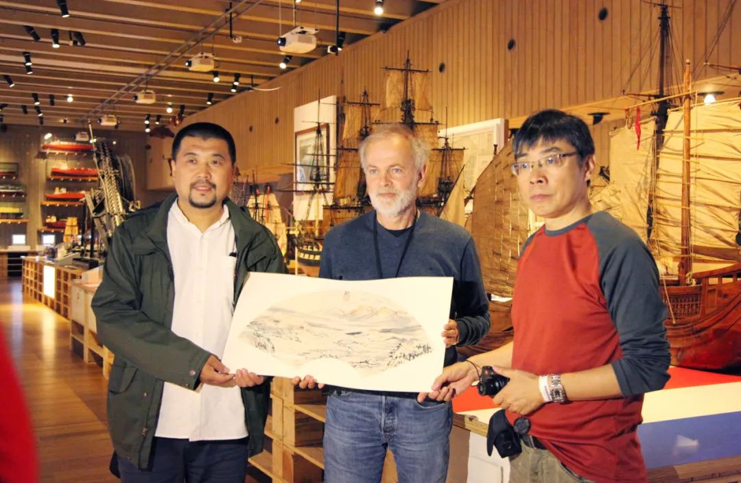 此外,中心积极寻求合作,为《海上丝绸之路两千年画展》《东西方古代海图对话》及《中国古船模回归展》的国内外巡展做准备。2016年6月21日,中心考察组访问欧盟总部,与欧洲议会交通旅游委副主席、“一带一路欧中文化旅游委员会”主席乌依海伊等商讨,在中欧人文高级别交流对话机制下,积极响应“一带一路”倡议,就合作推广中国海洋绘画艺术作品展等文化交流事宜达成共识。三天后,考察组又访问阿姆斯特丹国立博物馆,在中国驻荷兰大使馆文化处主任杨晓龙带领下,与亚洲贸易专家杨·哥本举行“西方古典绘画中的中国瓷器”专题学术研讨。杨·哥本希望进一步就大航海时代的东西方贸易问题深入交流,尤其期待获得第一手中国文献,以挖掘海上丝绸之路中罕为人知的中国大航海故事。