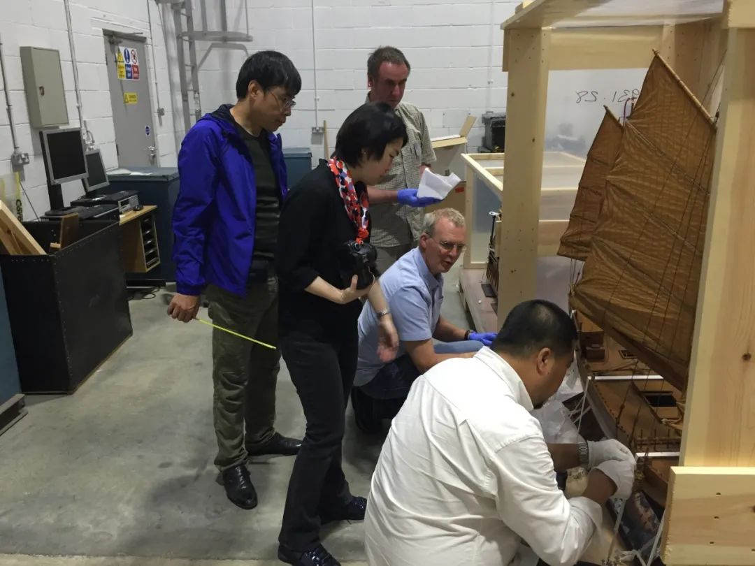 ▲海洋研究中心考察团在英国科学博物馆收藏品仓库测量船模