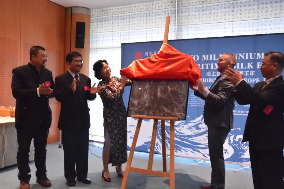 ▲国家艺术基金项目《海上丝绸之路两千年》美术作品欧洲巡展比利时站布鲁塞尔欧洲议会开幕仪式