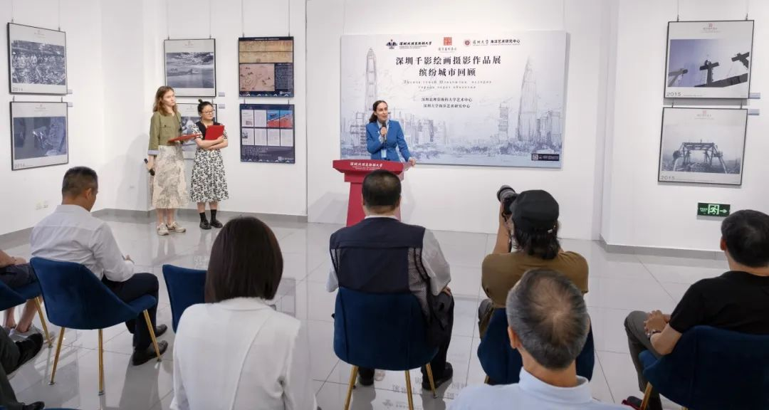 深圳北理莫斯科大学艺术中心主任叶卡捷琳娜 ·纳杰日金娜在开幕词中表达对所有来宾的热烈欢迎和衷心感谢,并表示本次展览不仅是一次艺术的盛会,更是中俄两国文化交流的盛会。她强调与深圳大学海洋艺术研究中心的合作对于加深中俄文化艺术领域的融合具有重要意义。她对展览作品的两位主创作者冯明老师和施平老师表达感谢,并提出展览通过新旧图片的对比形式,生动地呈现了深圳的今昔面貌和变化,为在校俄罗斯师生提供了一个了解中国、了解深圳的宝贵机会。最后也祝愿展览取得圆满成功,希望所有观众都能从展览中收获满满,享受一段美好的艺术之旅。