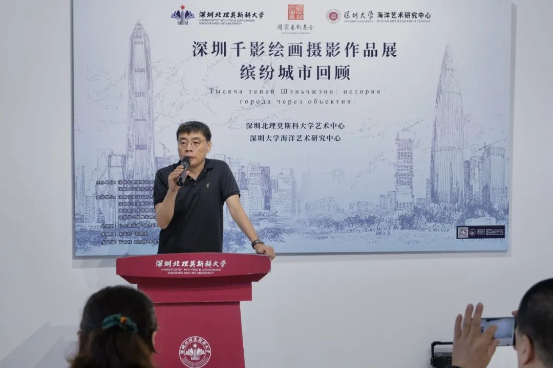 2024年6月14日上午,由深圳北理莫斯科大学艺术中心、深圳大学海洋艺术研究中心主办,深圳市海洋文化艺术研究会、深圳北理莫斯科大学附属实验中学、海洋龙文化发展(深圳)有限公司、深圳信亿发展有限公司支持的《深圳千影绘画摄影作品展·缤纷城市回顾》展,在深圳北理莫斯科大学主楼一楼展厅开幕。