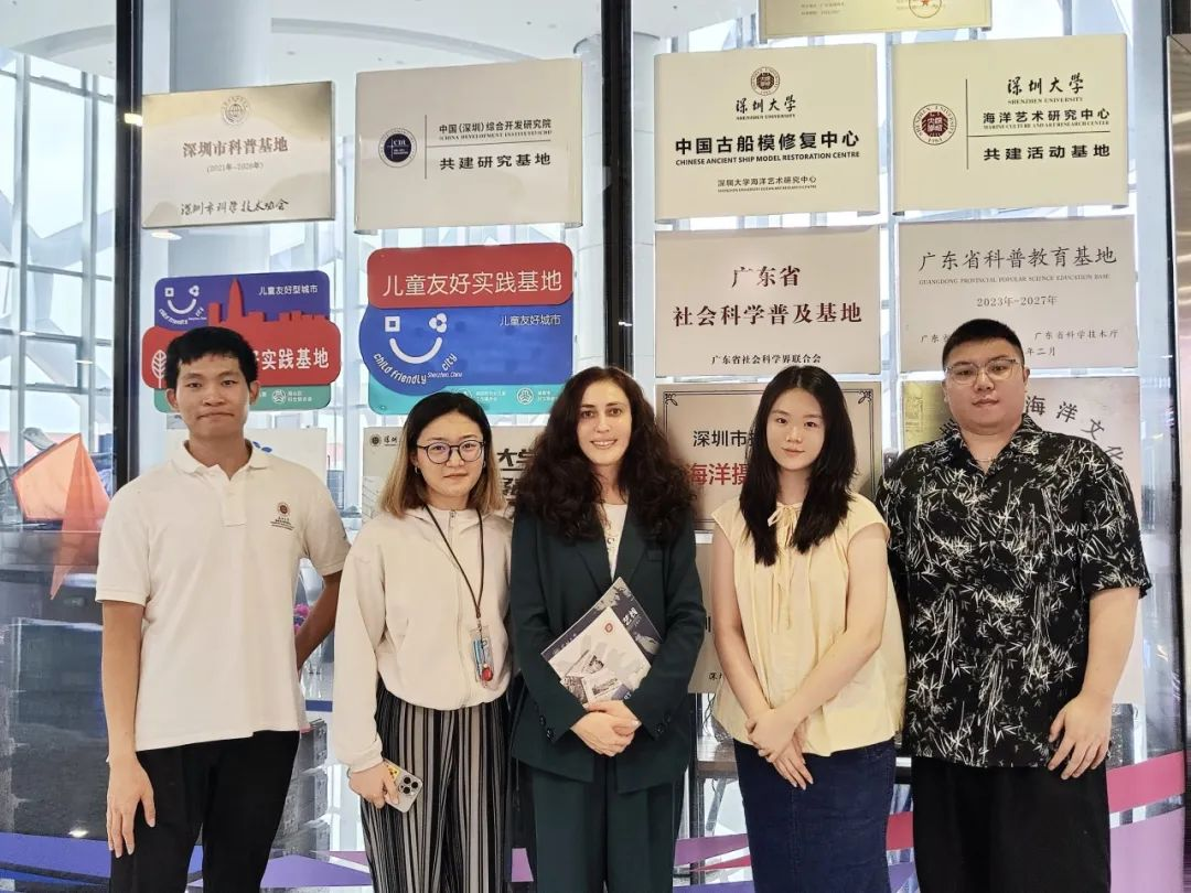 2024年5月30日,深圳北理莫斯科大学艺术中心主任叶卡捷琳娜·纳杰日金娜一行莅临深圳大学海洋文化科普教育(蛇口邮轮母港)基地参观,深圳大学海洋艺术研究中心研究员、深圳大学海洋文化科普教育(深北莫)基地负责人朱亚珍,深圳大学海洋文化科普教育基地科普专员朱佳泉陪同参观并介绍基地情况。