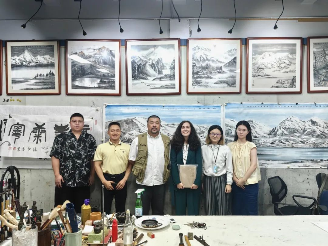深圳北理莫斯科大学艺术中心主任叶卡捷琳娜·纳杰日金娜,秘书苗胥妹,助理研究员欧阳利,深圳大学海洋艺术研究中心主任、深圳市海洋文化艺术研究会会长张岩鑫,深圳大学海洋艺术研究中心特聘教授、海洋龙文化发展(深圳)有限公司总裁卢华堂,深圳大学海洋艺术研究中心研究员、深圳大学海洋文化科普教育(深北莫)基地负责人朱亚珍,深圳大学海洋艺术研究中心研究员何启硕出席了本次交流活动。