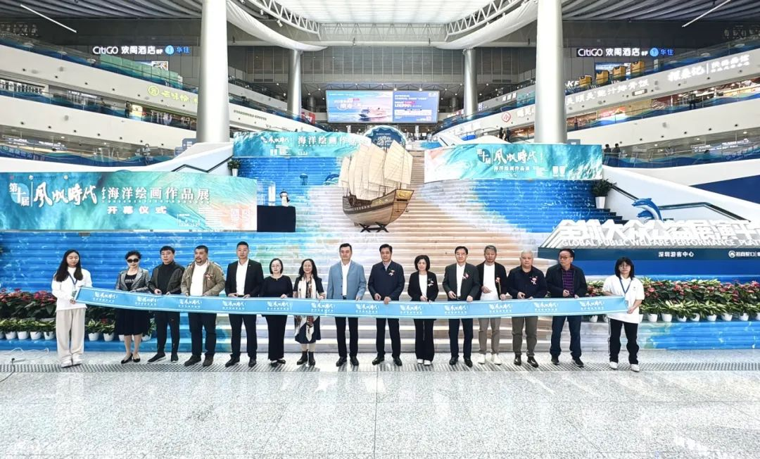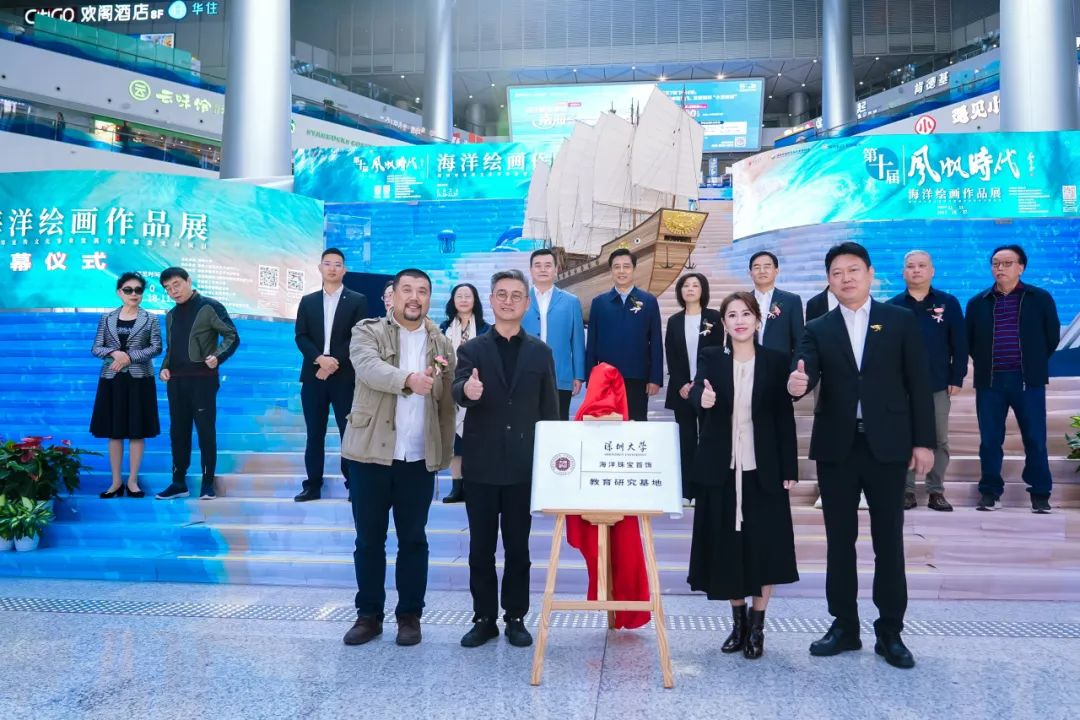 2023年11月18日上午10时,由深圳市宣传文化事业发展专项基金支持,深圳大学主办,深圳大学海洋艺术研究中心承办的第十届《风帆时代》海洋绘画作品展在深圳大学海洋文化科普教育(深圳招商蛇口邮轮母港)基地在招商蛇口邮轮母港一楼天梯盛大开幕。文化部原副部长、中国文联第十届副主席董伟,中国航海学会副秘书长彭燕,深圳市社会组织管理局副局长白凌,深圳市政协联络工作委主任李瑞琦,中国工艺美术协会副会长、国家级工艺美术大师、吉林省民间工艺美术馆馆长冯宇平,深圳大学艺术学部副主任贺沁洋,深圳市美术家协会副主席、罗湖区美术家协会主席方晓龙,原深圳市规划和国土资源委员会副主任、海洋局副局长、深圳市决策咨询委员会专家梁俊乾,深圳全球海洋中心城市建设促进会副会长、秘书长李文蔚,招商局邮轮有限公司港口业务中心总经理、深圳招商蛇口国际邮轮母港有限公司常务副总经理王晓晨等领导出席了开幕仪式。