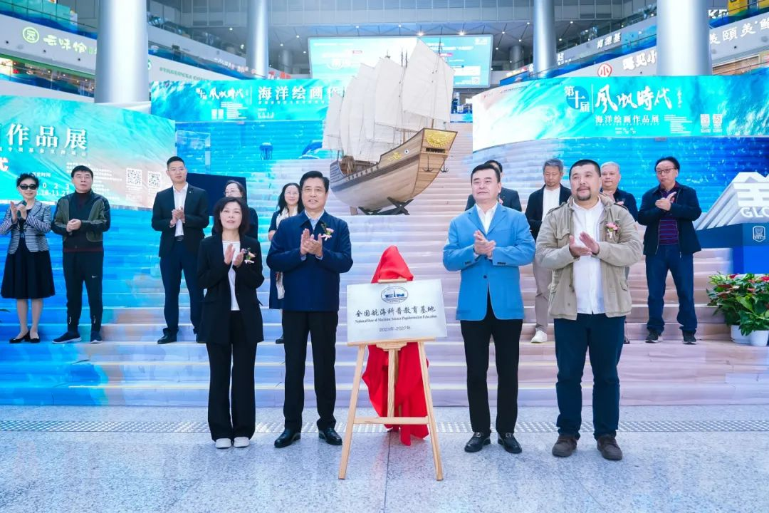 文化部原副部长、中国文联第十届副主席董伟,中国航海学会副秘书长彭燕,深圳市社会组织管理局副局长白凌,深圳大学海洋艺术研究中心主任、深圳市海洋文化艺术研究会会长张岩鑫教授,共同为“全国航海科普教育基地”揭牌。