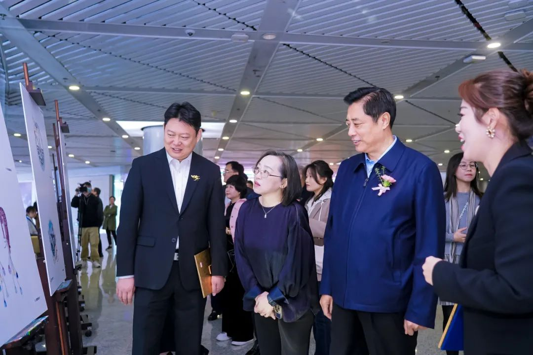 展厅参观环节,深圳职业技术大学首饰专业副教授宫平老师向领导嘉宾一行介绍了本次展出的首届《湾区海天之星》海洋珠宝首饰艺术专题作品展,琳琅满目的海洋珠宝让人眼前一亮,这种海洋主题珠宝领域的创新尝试将海洋与珠宝完美融合,碰撞出亮眼火花。