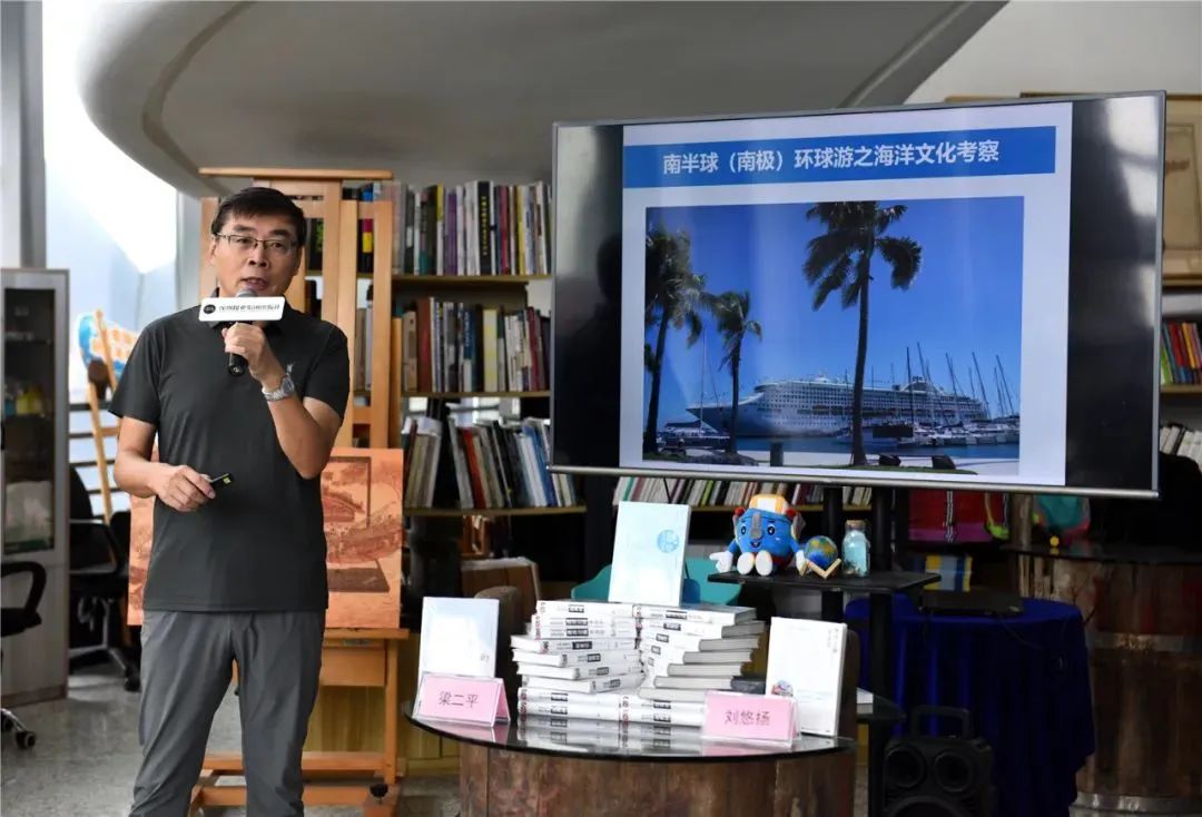 “此行最难忘的是看了南十字星,那就从星星说起。”特邀嘉宾梁二平在活动中首次公开分享了他的环南半球航行故事。他通过邮轮环球航行,体验与传播海洋文化,航迹覆盖两大陆之极(南非与南美),从好望角到合恩角,足迹触达南极以及三大洋的重要岛屿。在航行结束之时,梁二平记录旅程的点滴,汇集成63篇航行手记以及海洋文化类的照片及视觉记录。