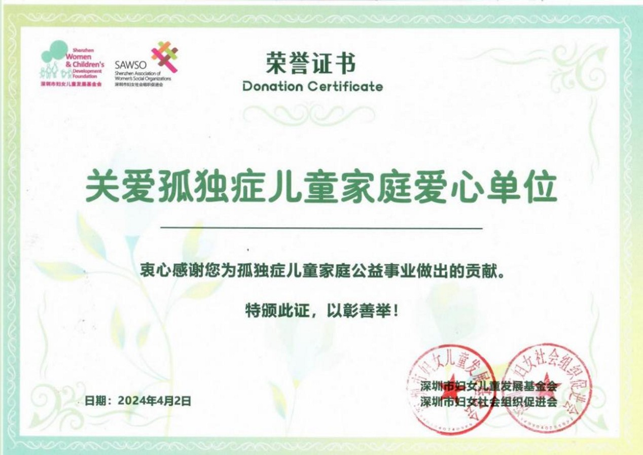 3. 2024年授予关爱孤独症儿童家庭爱心单位