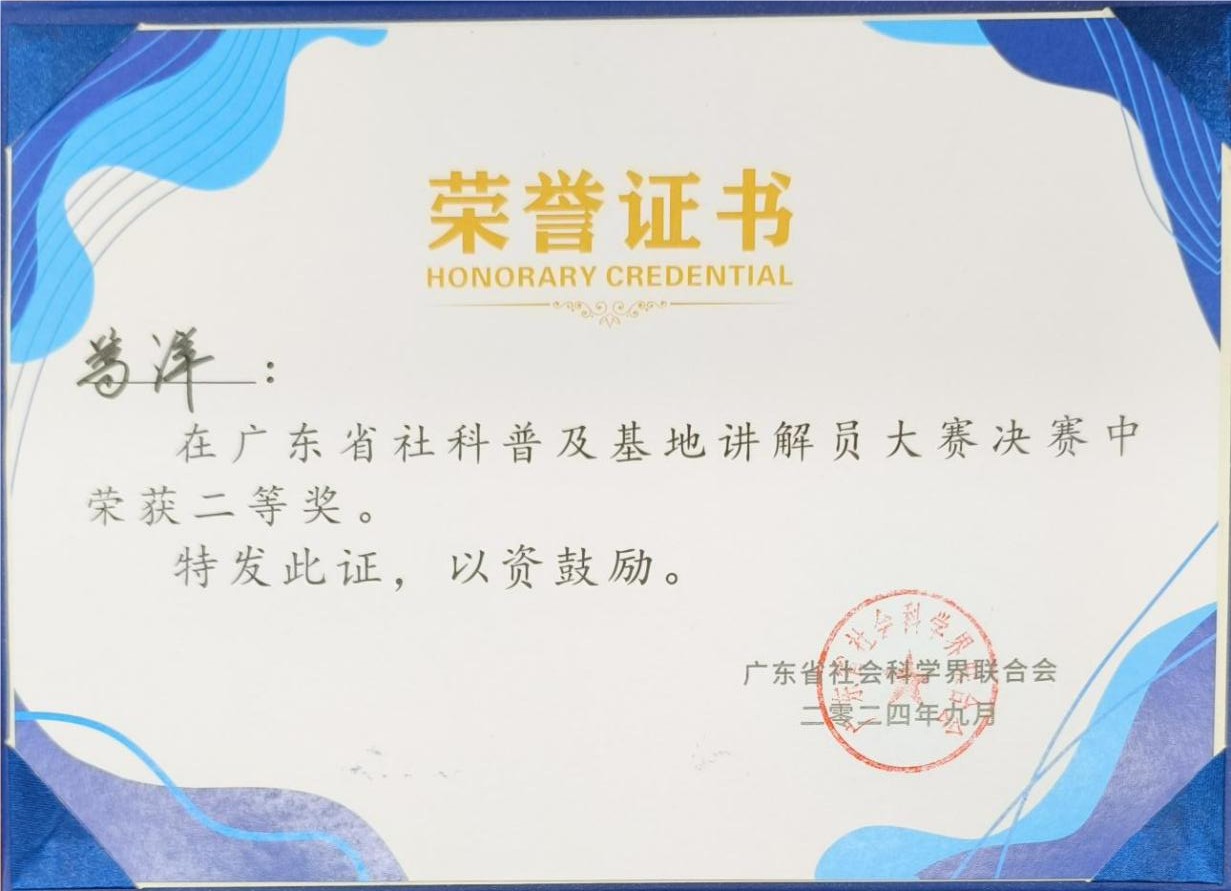 4. 2024年广东省社科普及基地讲解员大赛二等奖