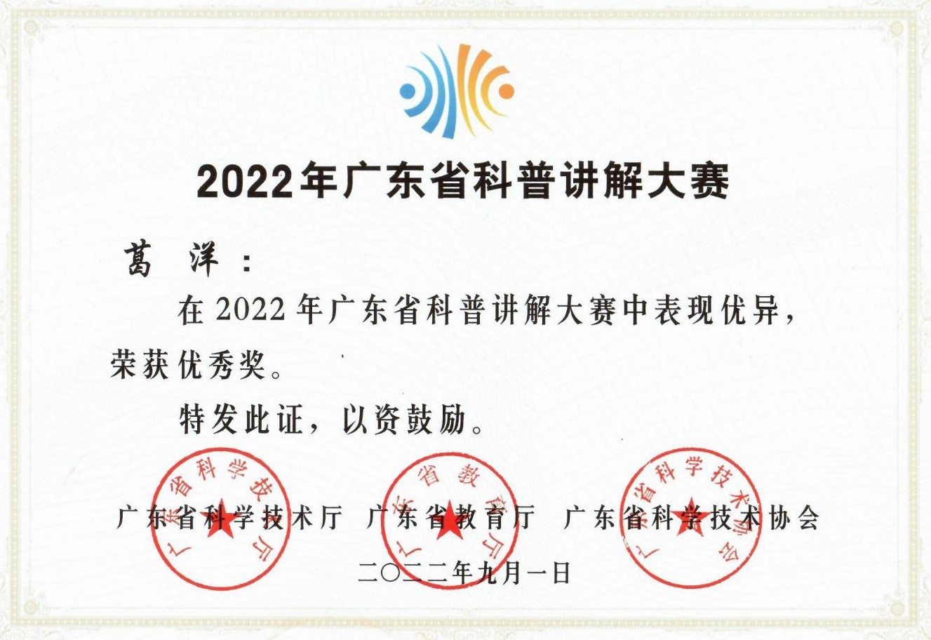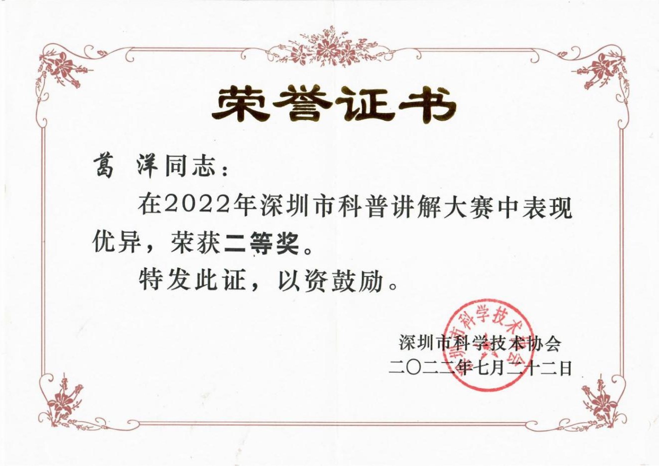 6. 2022年获评深圳市科普讲解大赛二等奖、广东省科普讲解大赛优秀奖