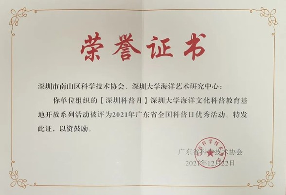 7. 2021 年获评 广东省“全国科普月”优秀组织单位奖